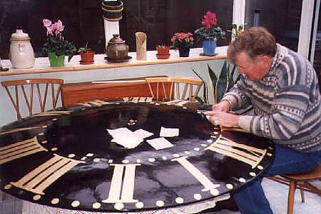 The tracing made earlier was used to replicate the numerals, half hour, quarter hour and